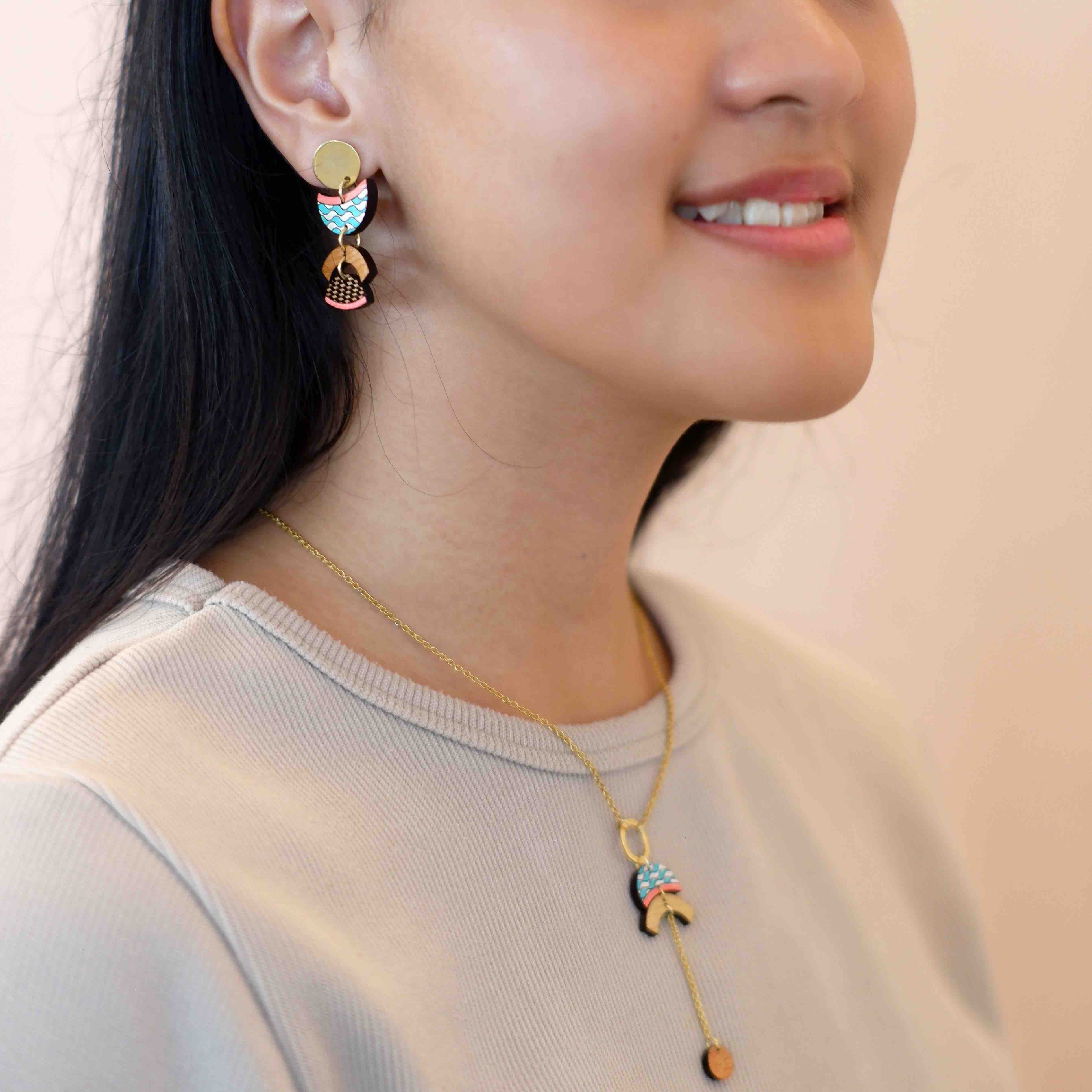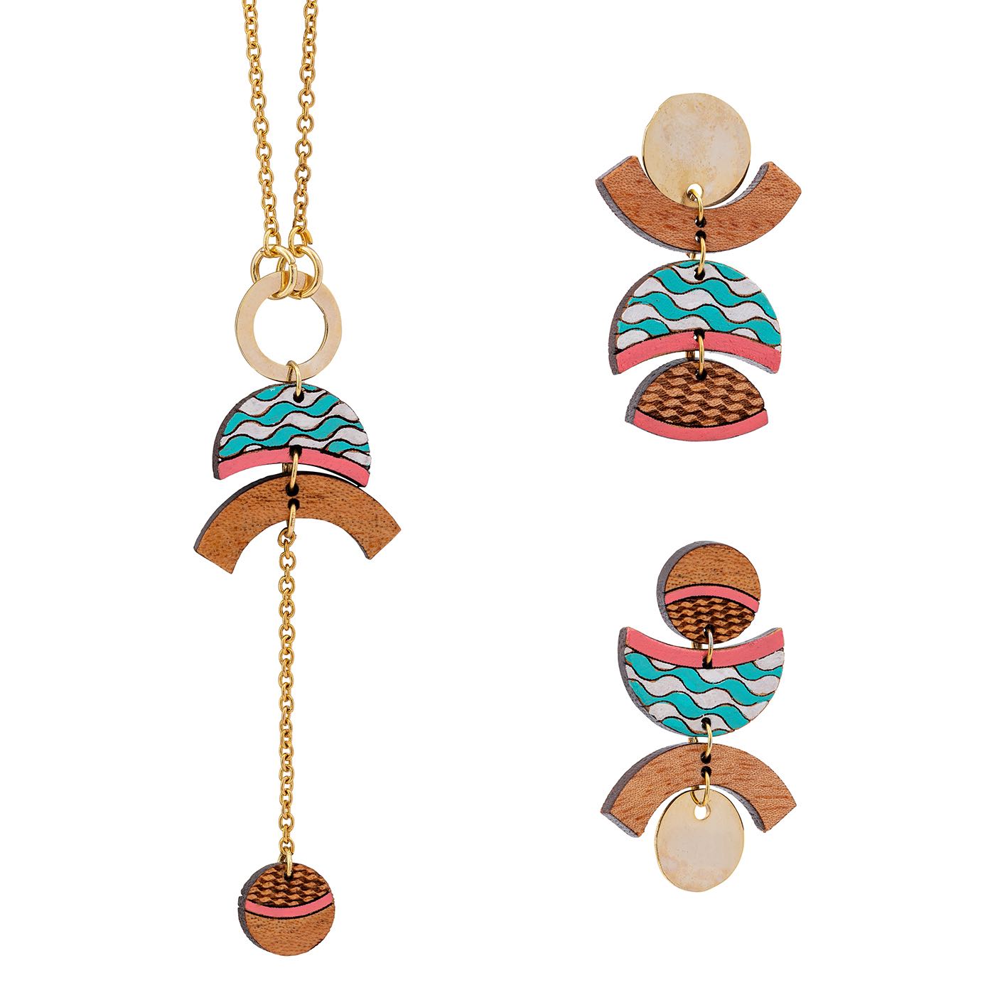 Our artisans have salvaged offcuts of oak, teak and mahogany from the furniture industry to create their elegant range of jewellery. Their designs perfectly combine the shade and grain of the wood with natural colours and metal accessories.