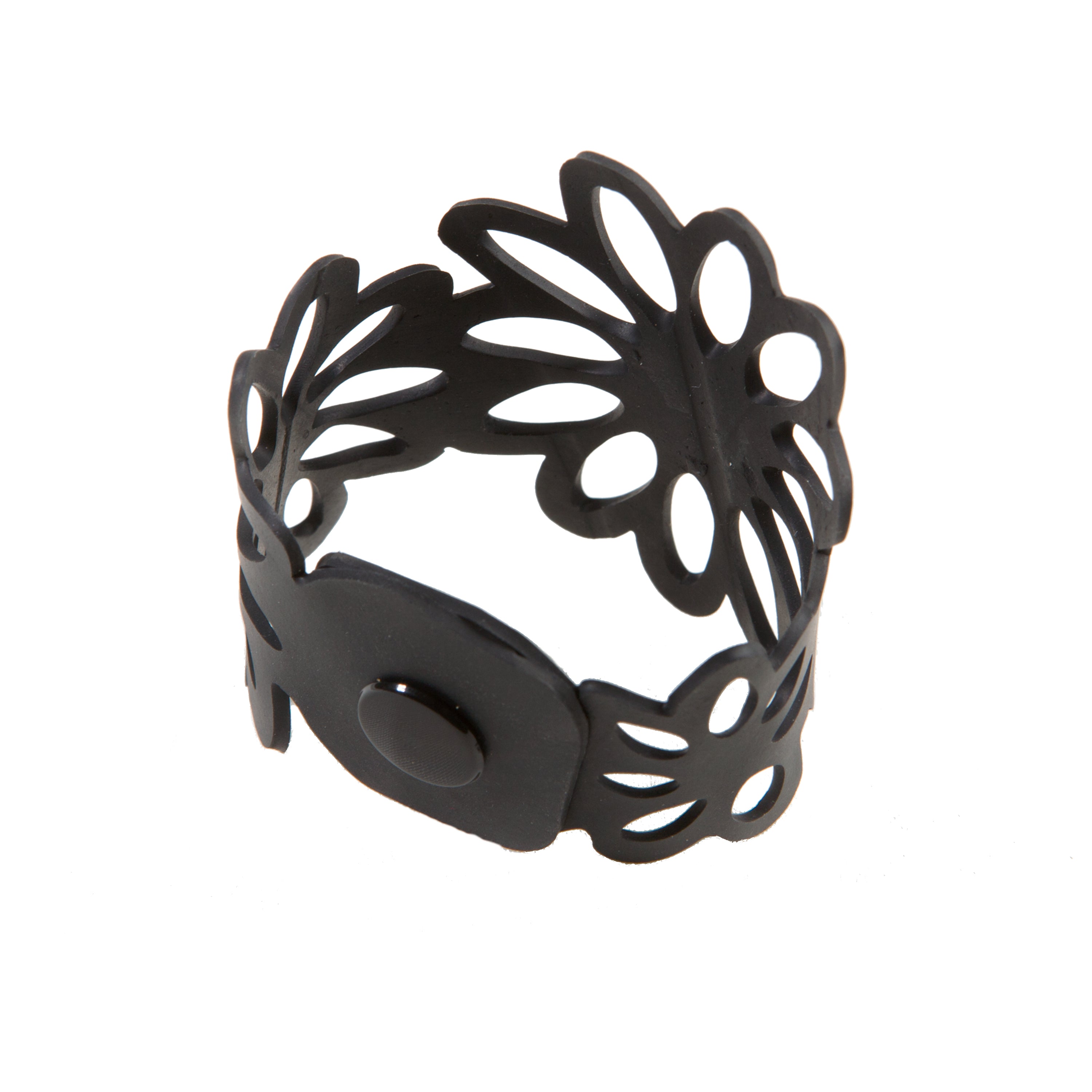 Paguro Upcycle recycled rubber bracelet with black floral cutout design for eco-friendly style