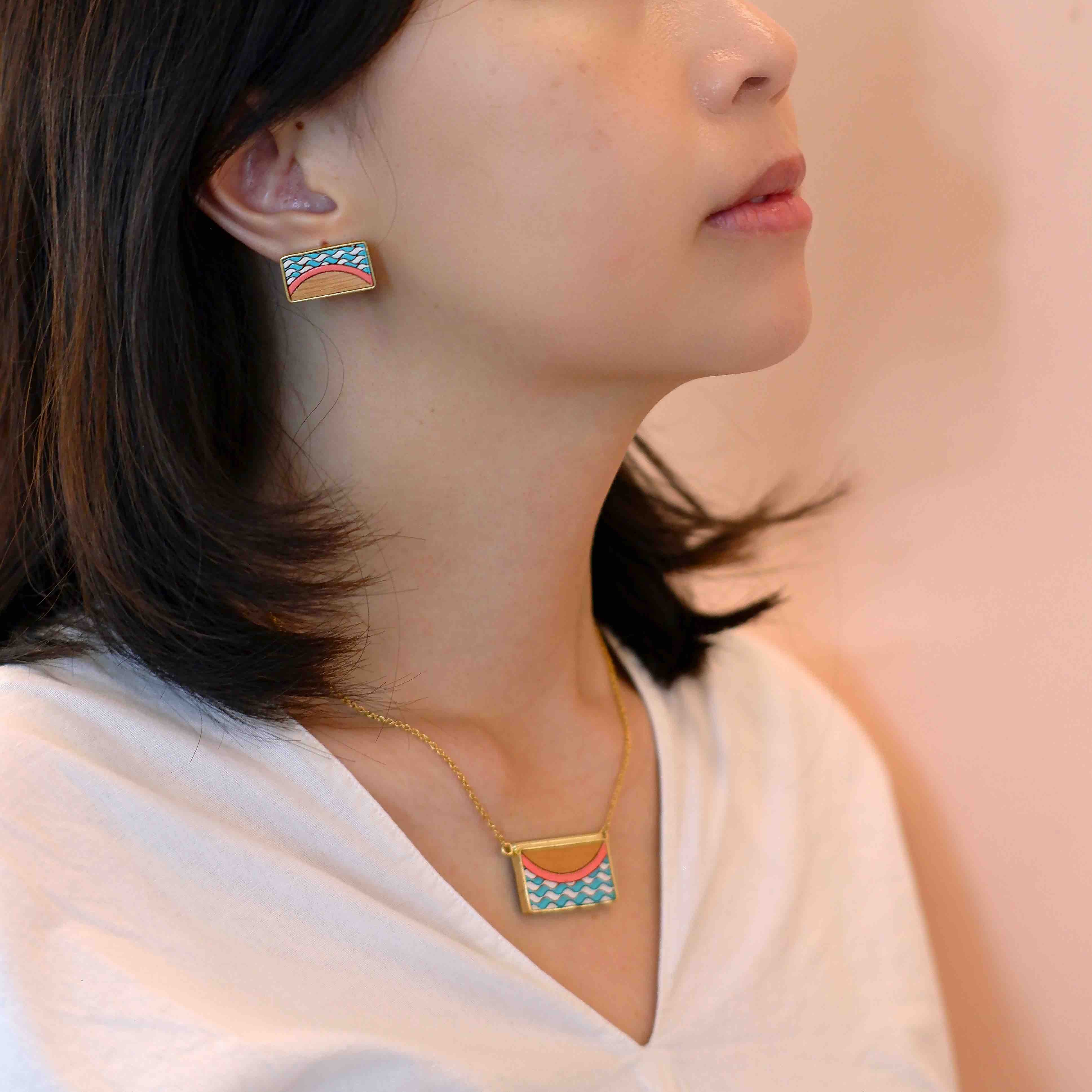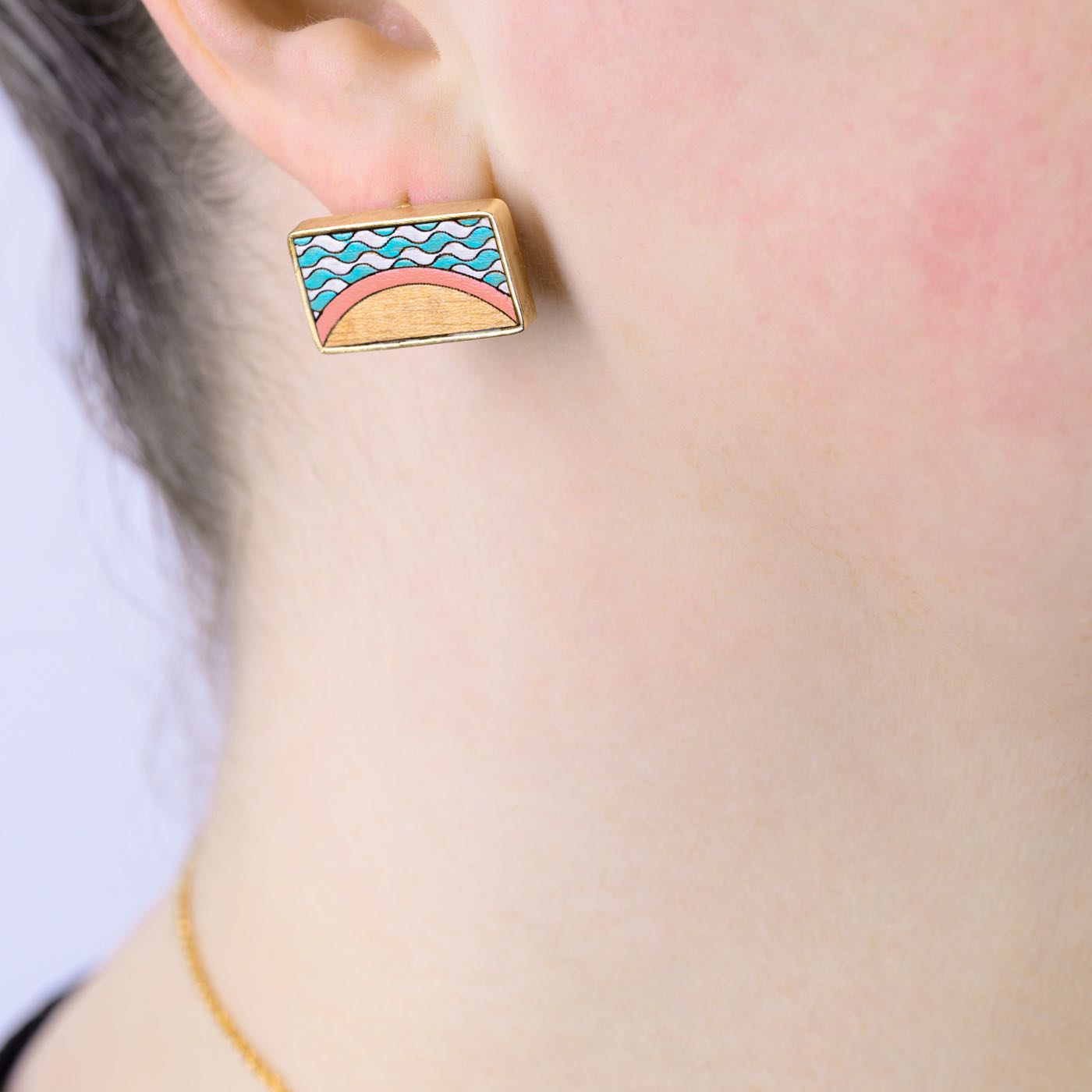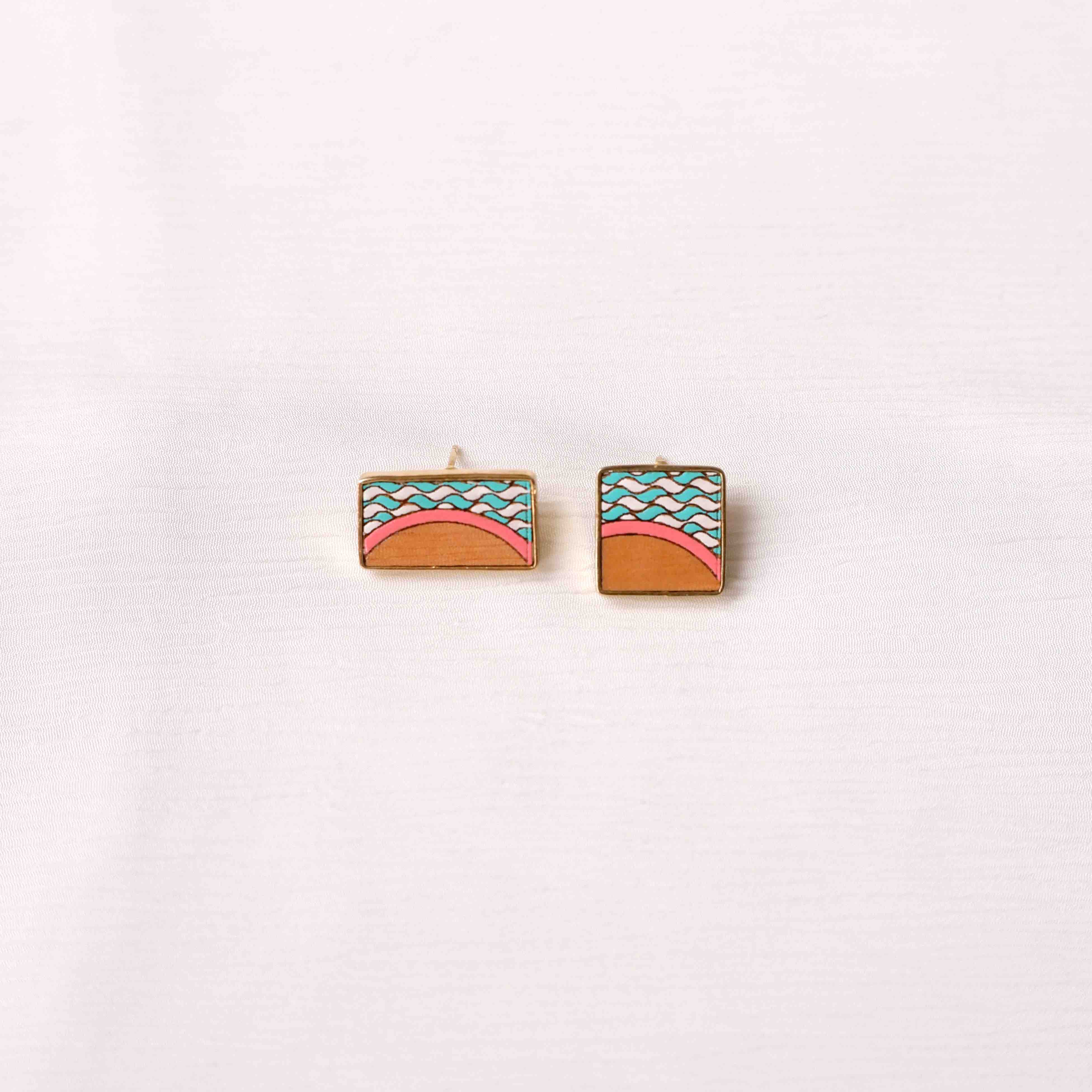 Seaside Recycled Wood Gold Earrings